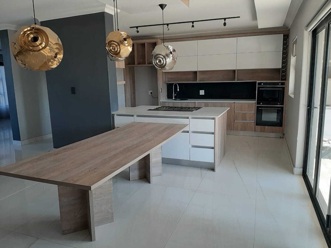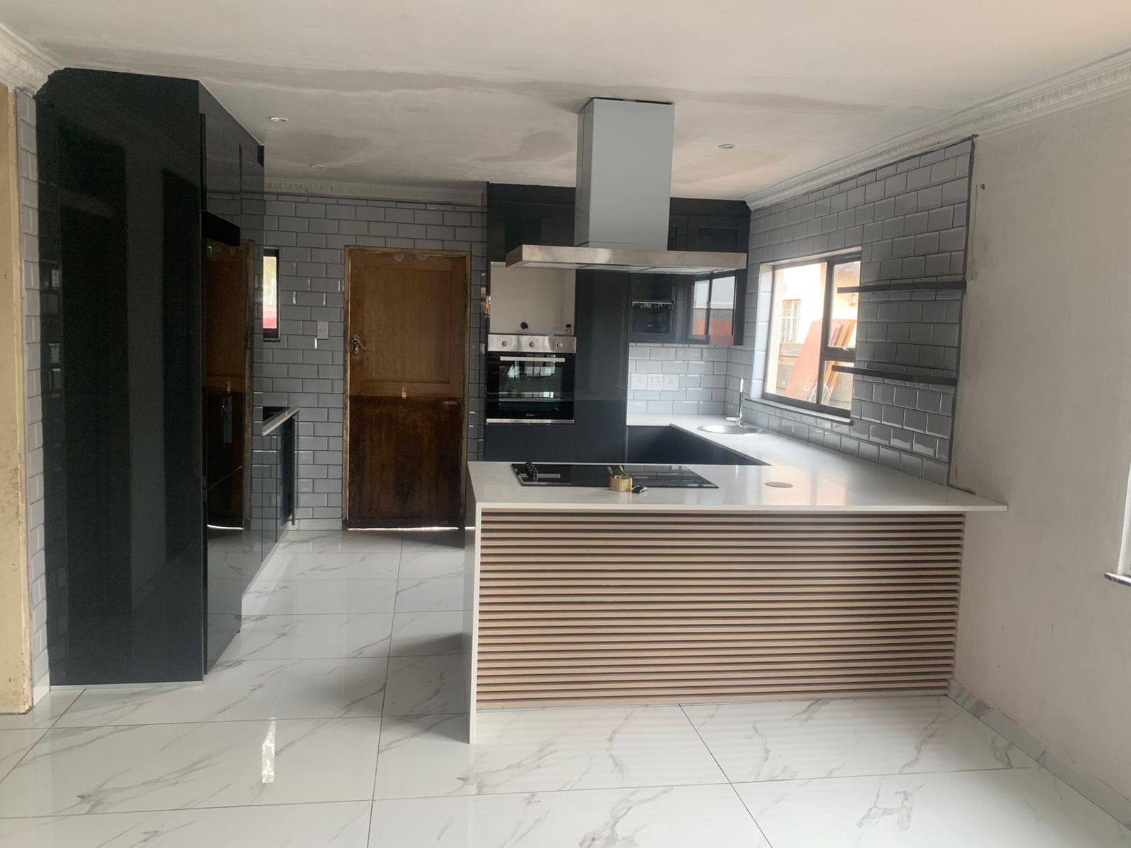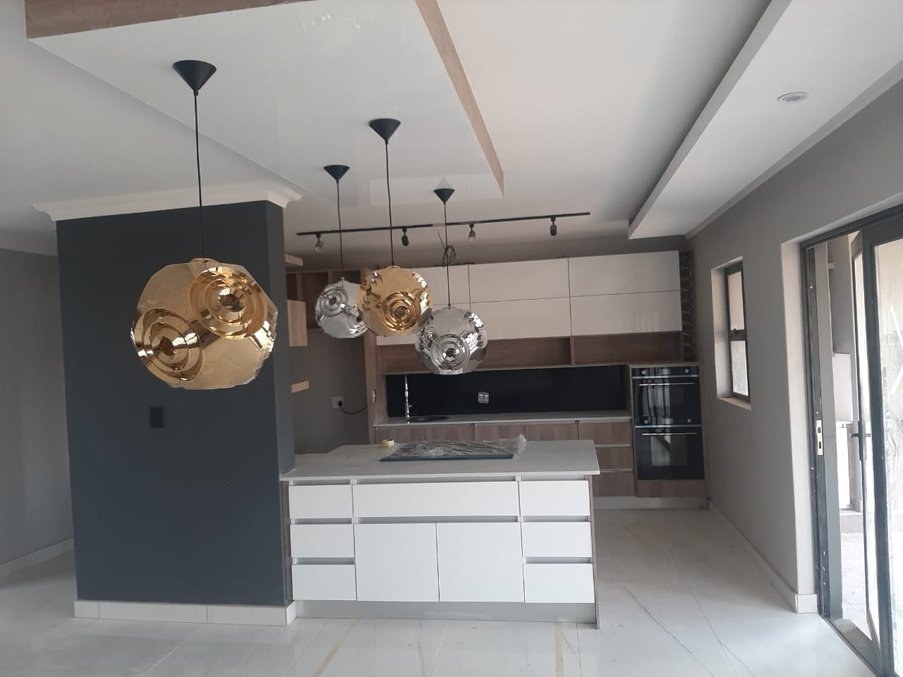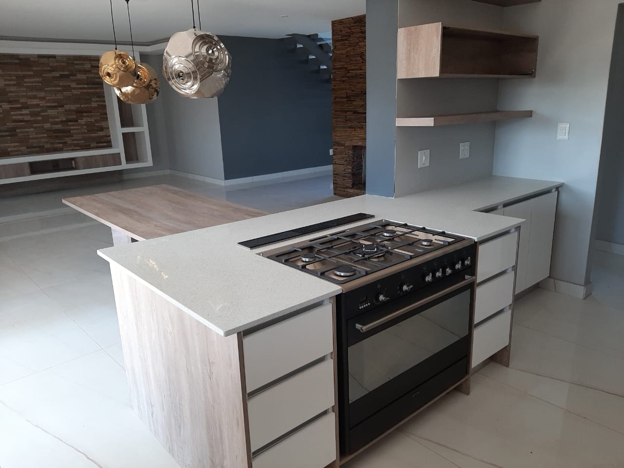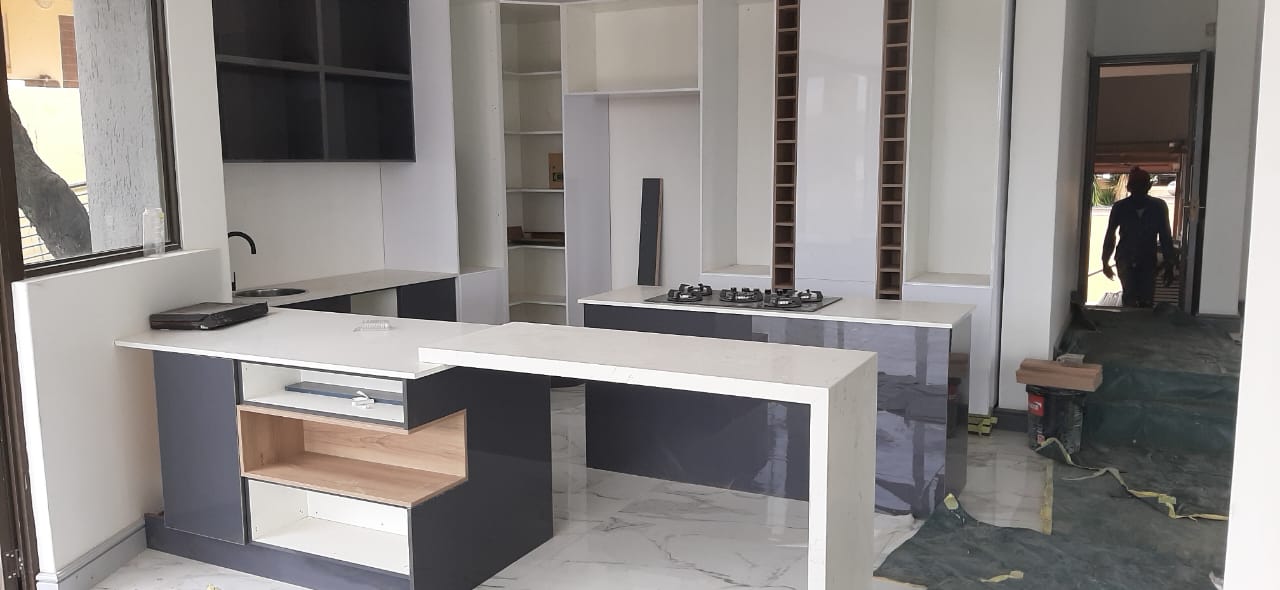 White gloss and grey stone countertop