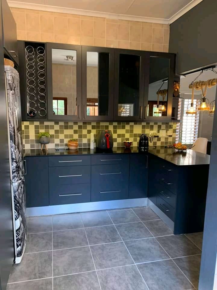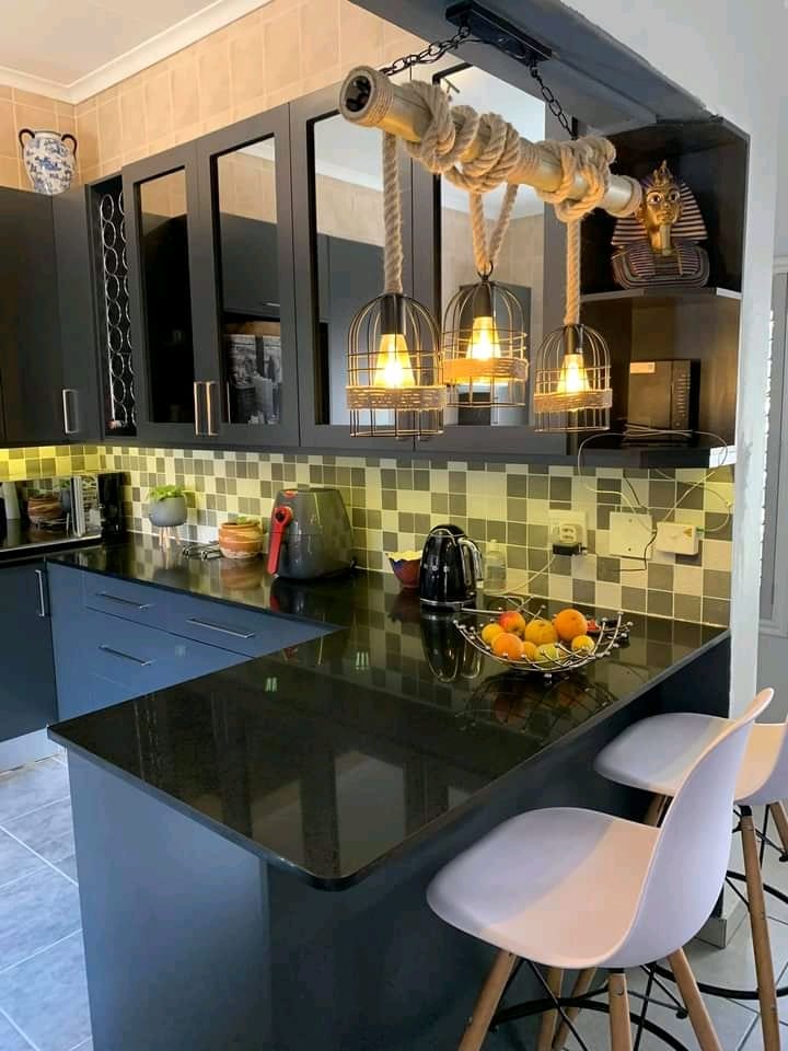 Kalapana melamine and black stone countertop