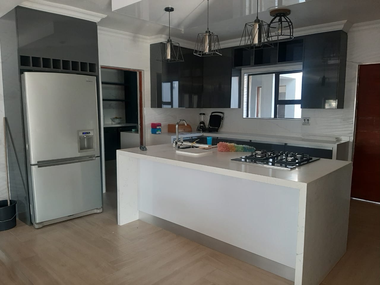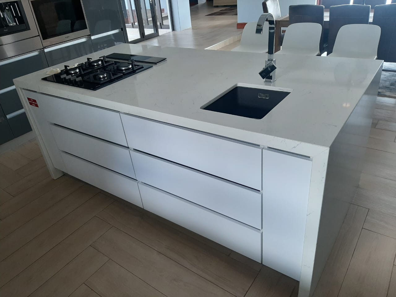 White gloss, brookhill and white stone countertop