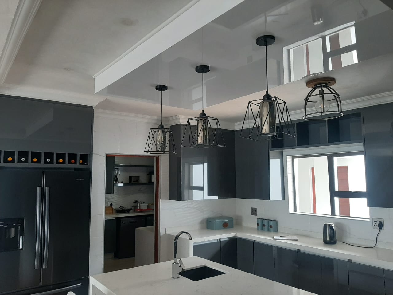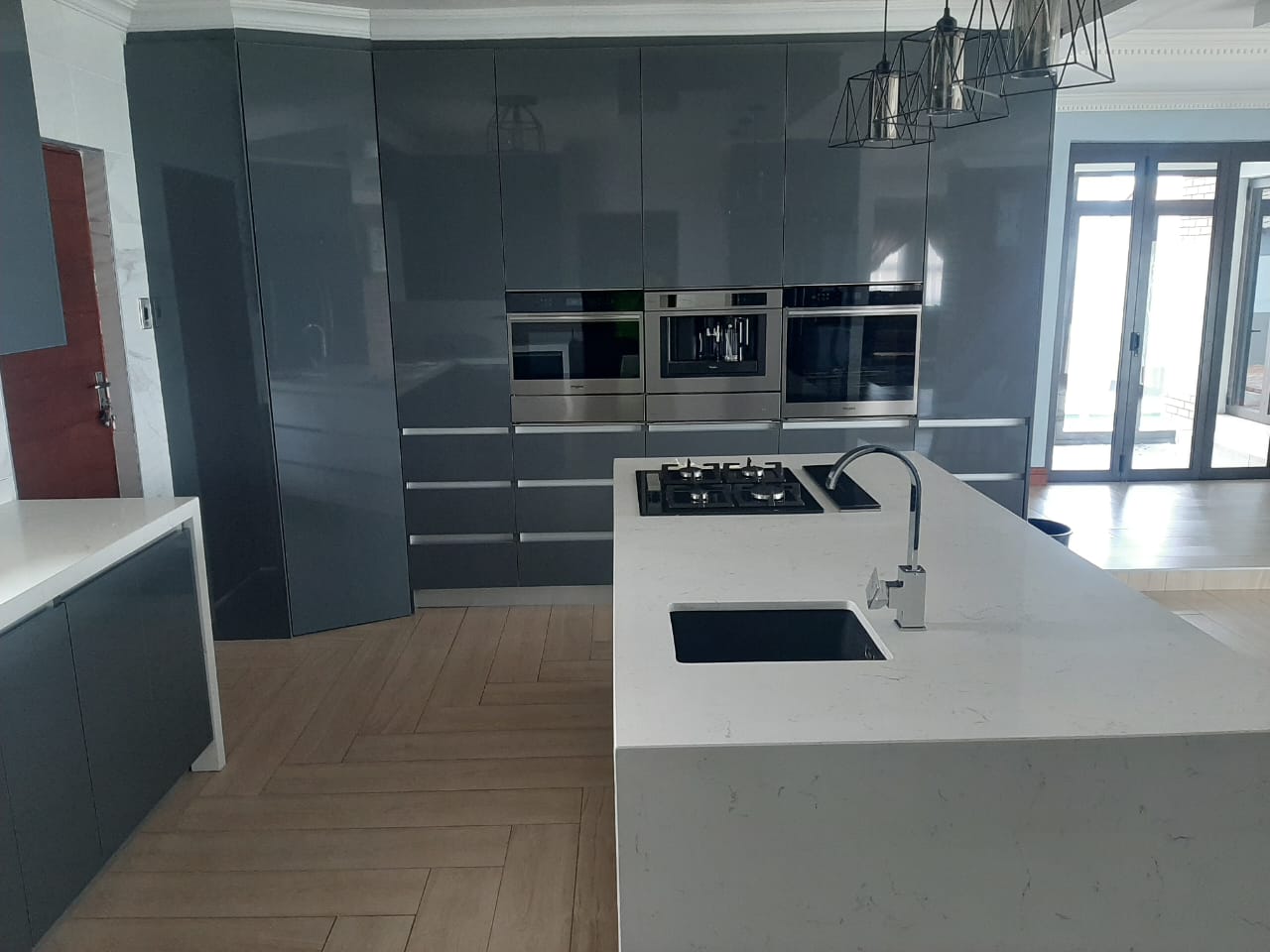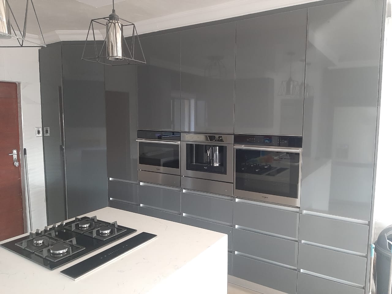 Storm grey gloss and white stone countertop
