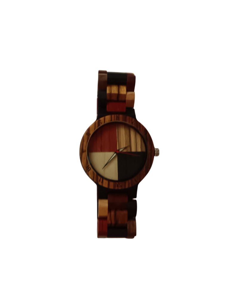 Wooden wrist watch for men and women with adjustable wooden chain strips.